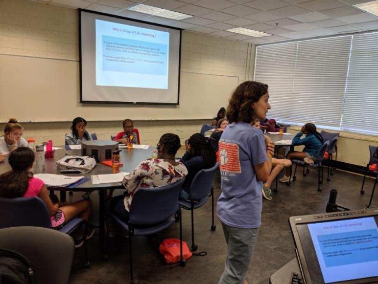 From June 24-26, Project WISE at Clemson University offered middle school girls the opportunity to shore up their mathematical and engineering skills as they engaged in projects relating to DNA and the genetic code, blood type and probability, and emergent complexity in a program called "Game of Life." The camp was led by Elena Dimitrova and Svetlana Poznanović, both mathematicians at Clemson University, and Molly Honecker, a graduate student in mathematical and statistical sciences at Clemson. (Elena Dimitrova has recently relocated to California Polytechnic State University.) Project WISE is a STEM-based summer camp at Clemson University open to middle school students. To learn more about next year's camp in June 2020, visit the Project WISE website here.